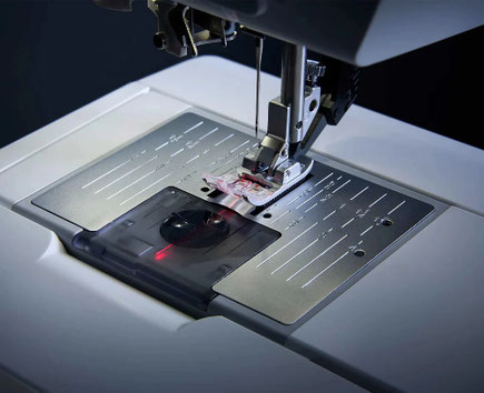 Für gleichmäßige Abstände beim Nähen sorgt eine projizierte Linie – auf Wunsch jederzeit zuschaltbar.